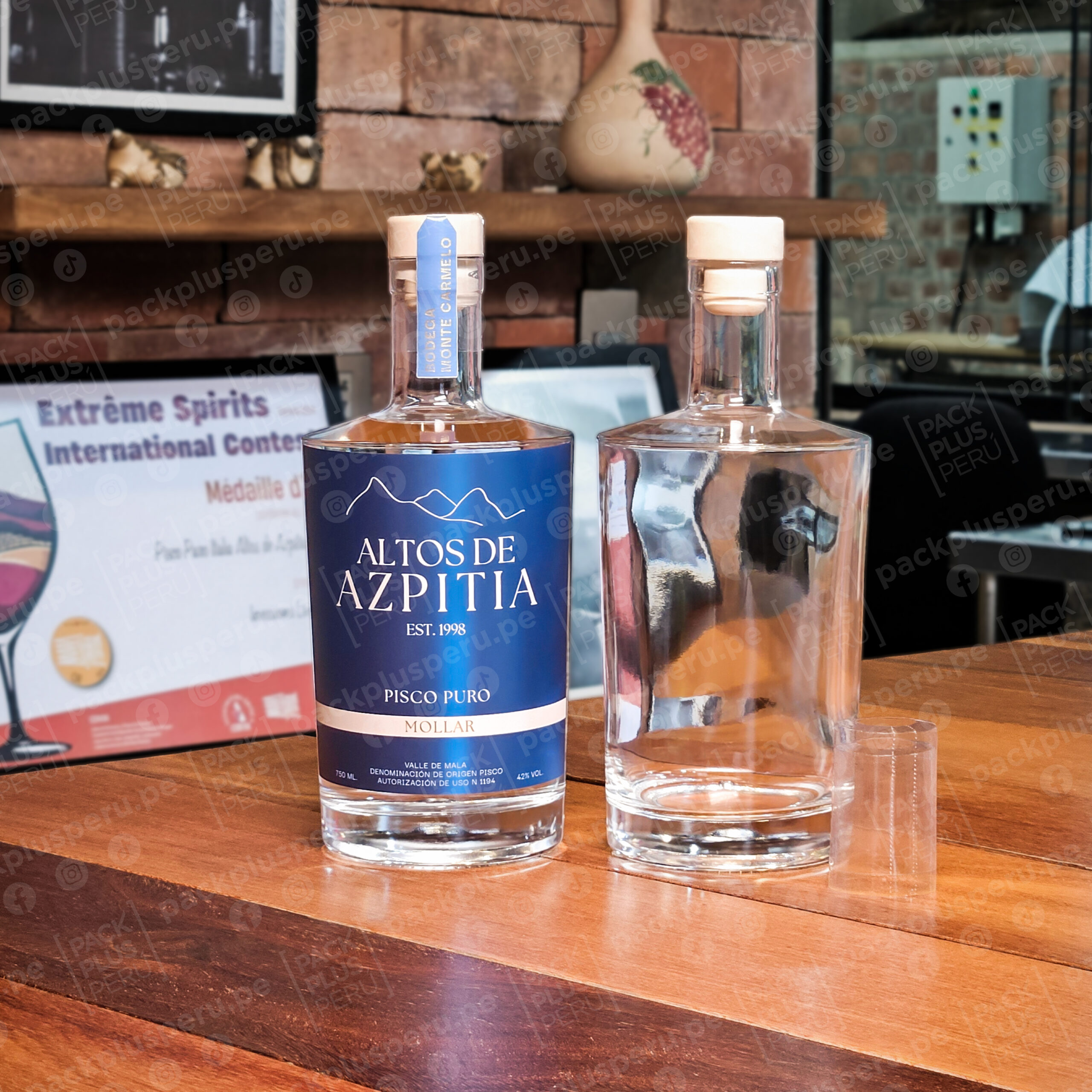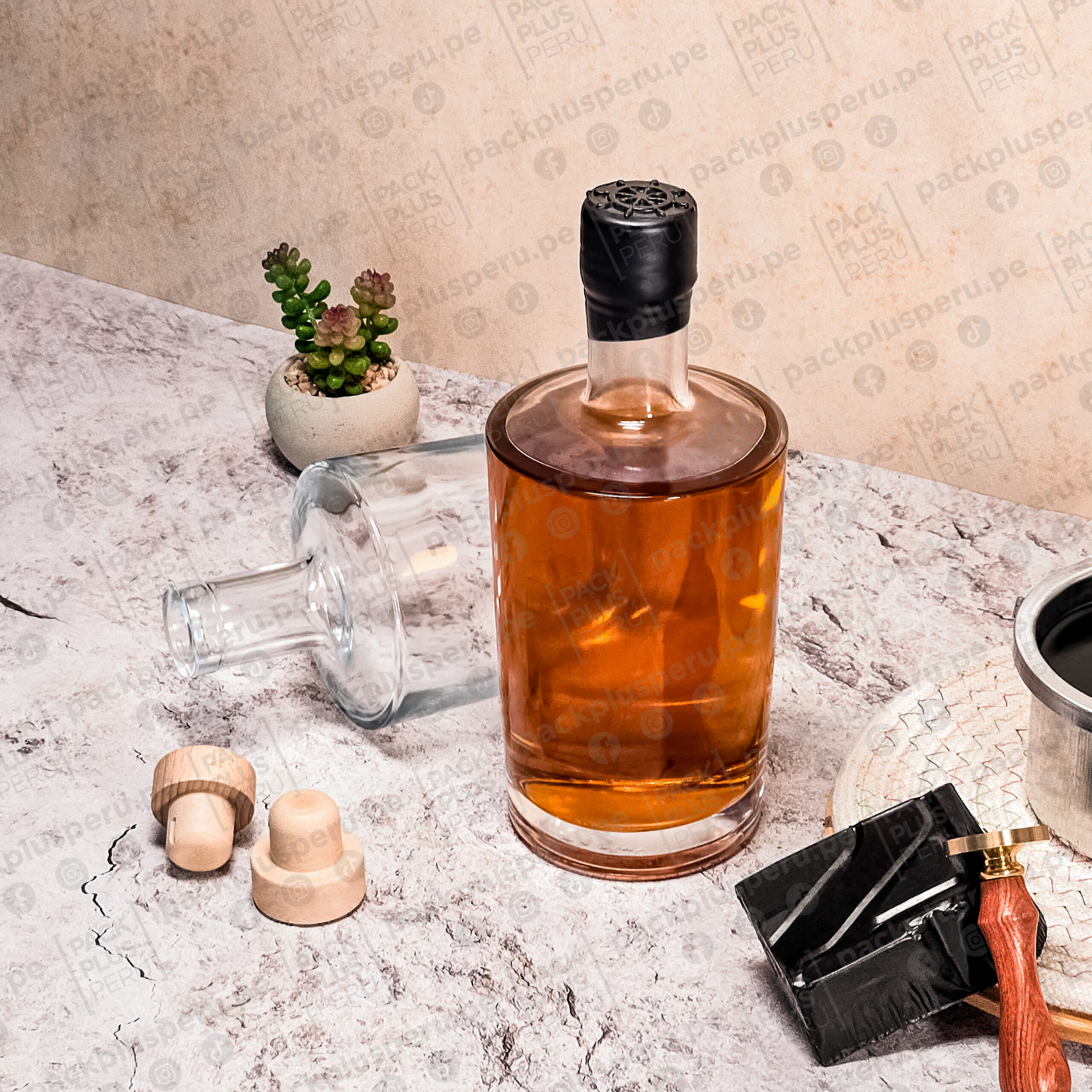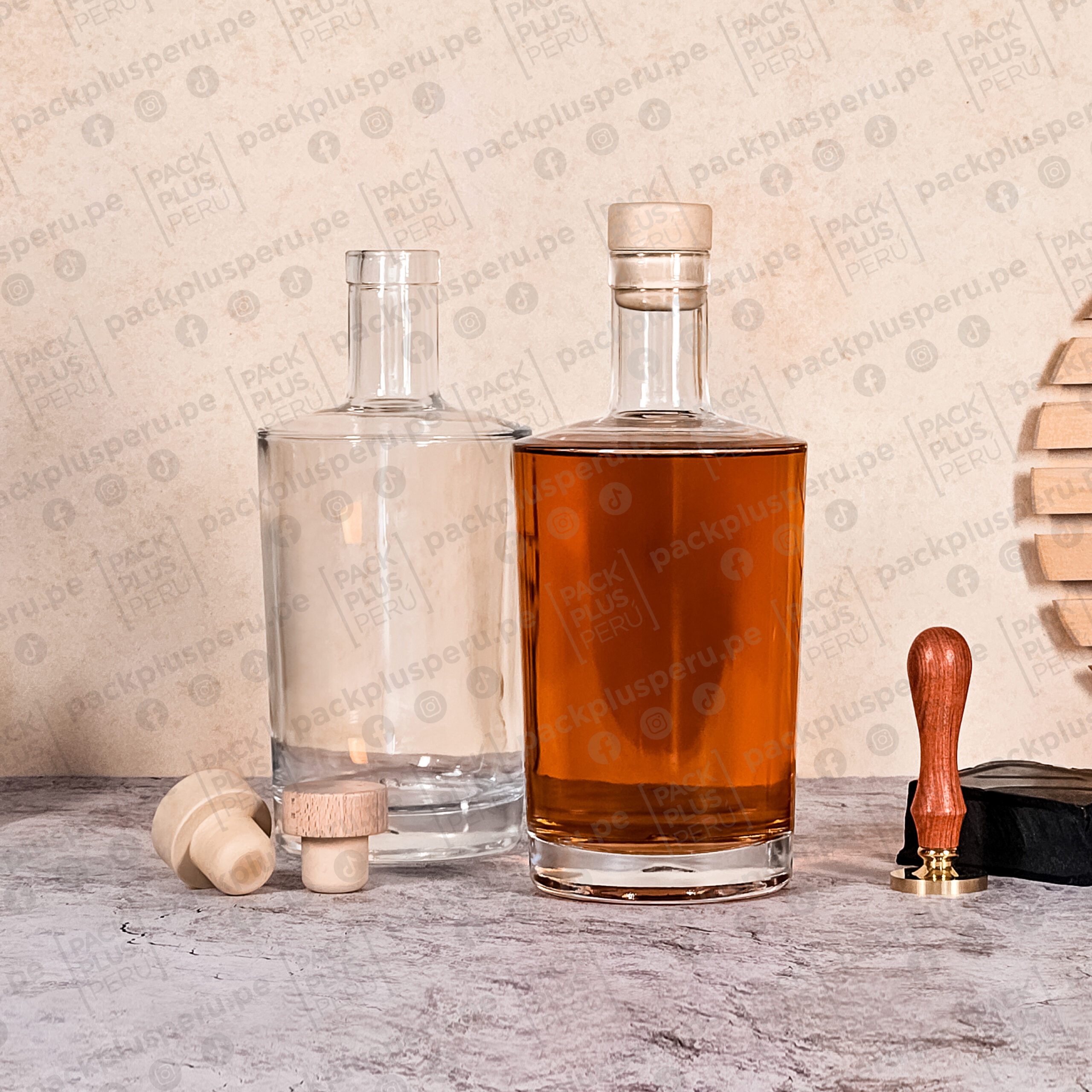 Botella de vidrio 750ml premium para piscos, macerados, licores artesanales y más.