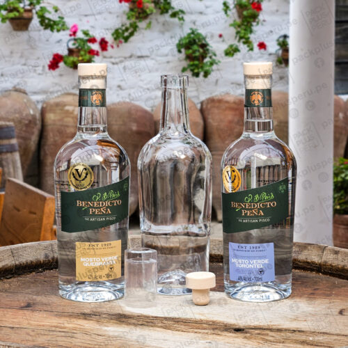 Botellas de vidrio de 700ml premium para piscos, macerados, licores artesanales y más.