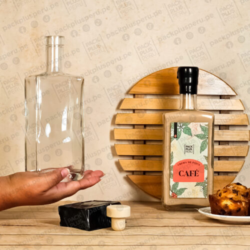 Botella de vidrio 375ml premium para piscos, macerados, licores artesanales y más.