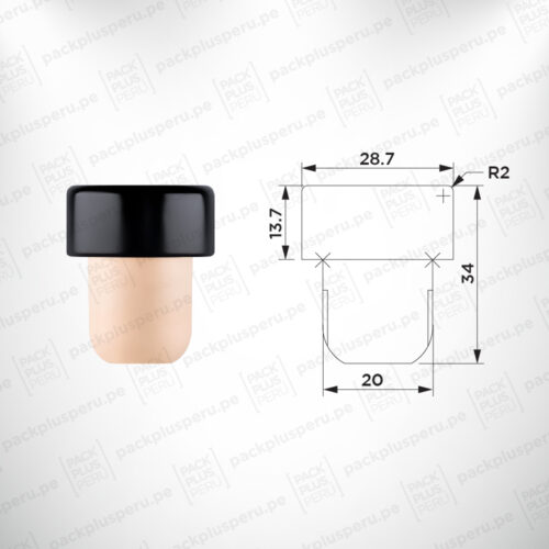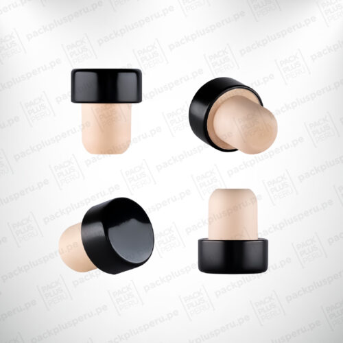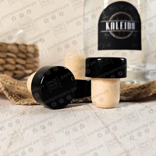 Accesorios para piscos. Tapones con cabeza de aluminio color negro y espiga sintética diseñados para el cierre seguro de botellas de vidrio para pisco, vino y licores.